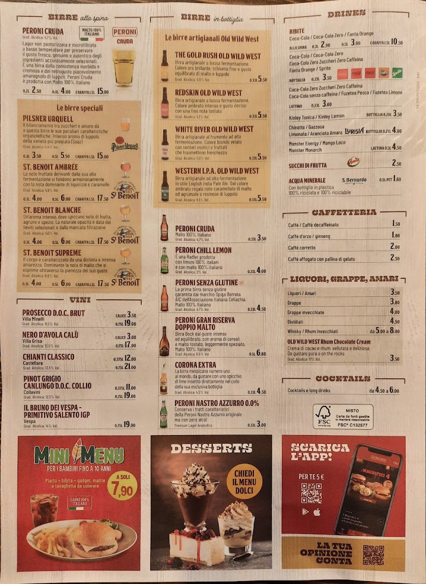 Welcome to Old Wild West - Forli, a restaurant that promises an immersive dining experience inspired by the wild, adventurous spirit of the American frontier. Located on Via Ravegnana in Forli, this establishment combines a unique decor with a diverse menu tailored for every palate.